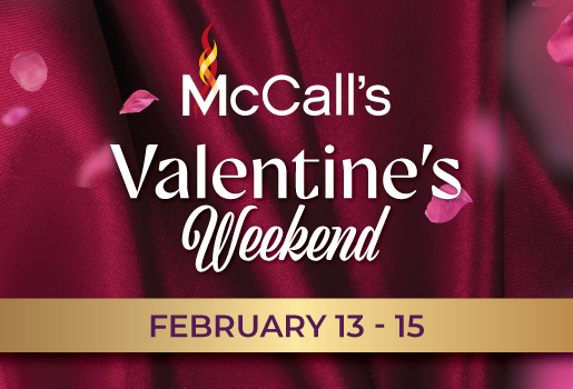 Celebrate Valentine’s Weekend at McCall’s Heartland Grill with an indulgent three-course prix fixe menu, available February 13–15. Start with Shrimp & Lobster Étouffée, then choose between a 14oz New York Steak au Poivre or elegant Branzino Crab Imperial, and finish on a sweet note with Pistachio Chiffon layered with raspberry and white chocolate mousse. It’s a cozy, elevated dining experience perfect for sharing something special.